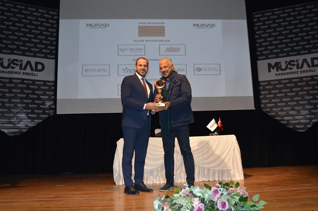 Konferansın ardından MÜSİAD Kdz. Ereğli Şube Başkanı Kemal Gülbay, Mete Yarar’a ay-yıldız figürlü bir plaket takdim etti. Sponsor firmalara da teşekkür plaketi verilmesinden sonra hatıra fotoğrafı çekildi.