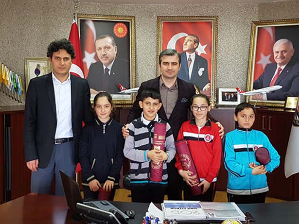 23 Nisan Ulusal Egemenlik ve Çocuk Bayramı öncesi Atatürk Ortaokulu öğrencileri Akçakoca Belediye Başkanı Cüneyt Yemenici'yi ziyaret etti.