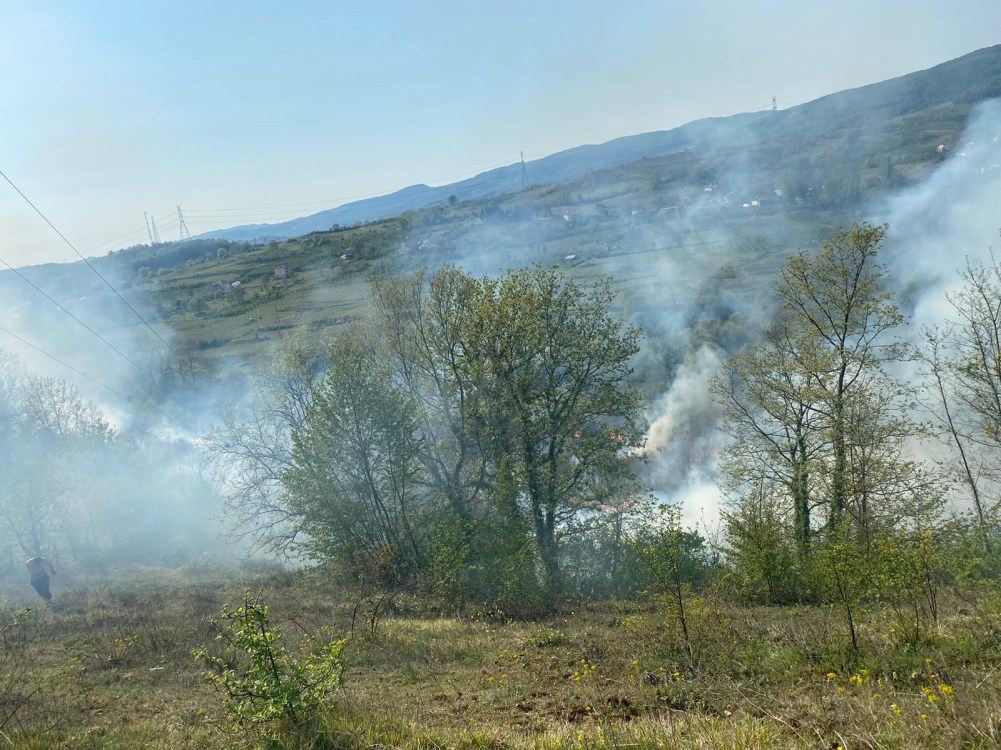 Zonguldak’ın Ereğli ilçesine bağlı Güzelyurt köyünde orman yangını çıktı. Orman İşletme müdürlüğü Arazözleri olay yerine ulaşırken köy halkı da yangına müdahale etmeye çalışıyor.
