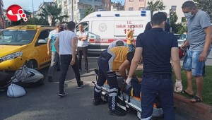 Ticari taksi motosikletliyle çarpıştı