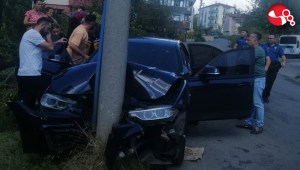 Karadeniz Ereğli ilçesinde otomobil sürücüsü önüne çıkan köpeğe çarpmamak için elektrik direğine çarptı. Kazada 2 kişi yaralandı.