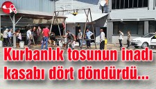 Kurbanlık tosunun inadı kasabı dört döndürdü
