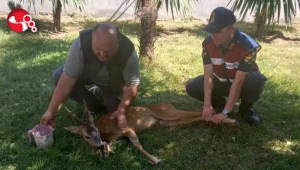 Köpeklerin saldırdığı karacayı vatandaş kurtardı