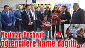 Neriman Posbıyık öğrencilere karne dağıttı...