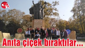 Anıta çiçek bıraktılar...
