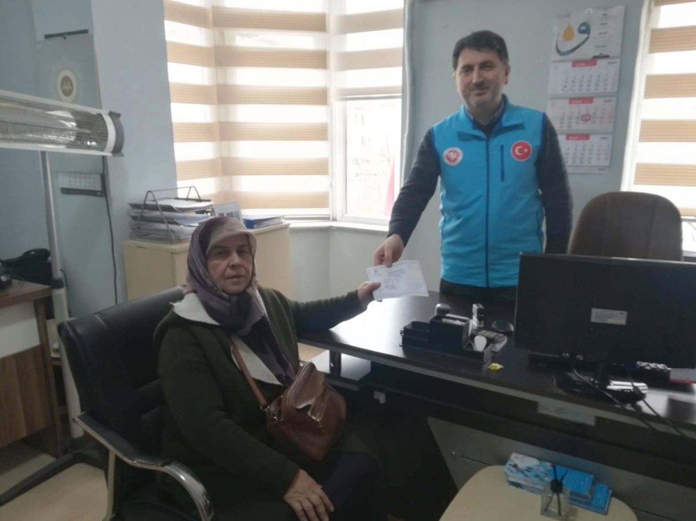 Zonguldak’ın Çaycuma ilçesinde Hülya Arat,hac parasını depremzedelere bağışladı.