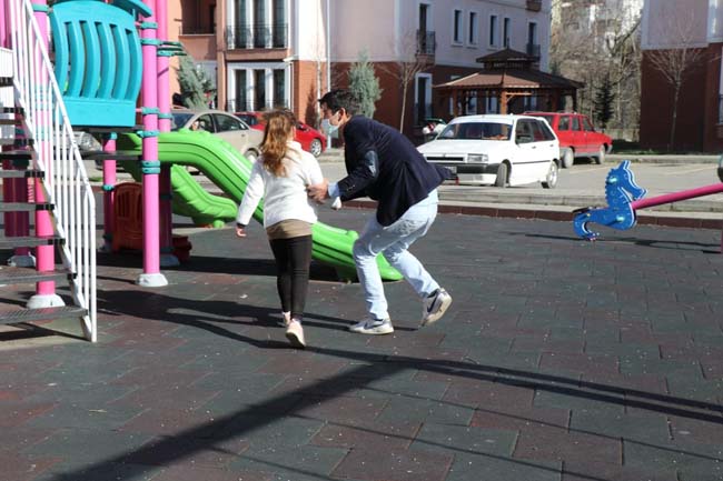 Haciz yoluyla kızını alan baba çocuklar gibi eğlendi
