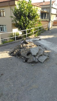 Kanalizasyon giderini yağmur giderine bağlandığından cevrede oluşan pis kokulardan şikayet üzerine yapılan çalışma ile sorunun giderildiğini kaydeden vatandaşlar, çalışma sonrasında kalan hafriyatın neden kaldırılmadığına anlam veremediklerini söyledi. Vatandaşlar "Burada bırakılan hafriyat tehlikeye neden oluyor. Kazaya sebebiyet verecek. Özellikle hava karardıktan sonra görünmüyor. Bu hafriyatın belediye ekipleri tarafından bir an önce kaldırılmasını istiyoruz" dediler.