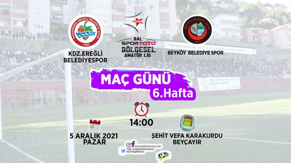 Kdz. Ereğli Belediyespor 5 Aralık Pazar günü saat 14.00’de kendi sahasında Beyköy Belediyespor ile karşı karşıya gelecek.