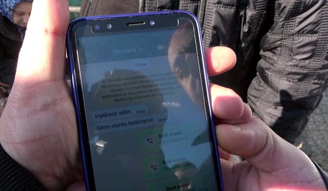 Baba Mustafa Nacar, halen kayıtlı olan mesajına bakarak gözyaşı dökerken oğlundan gelecek umutlu haberi bekliyor. Kayıp mürettebattan Mustafa Nacar'ın babasına yazdığı mesajda, yaşadıkları paniği de gösteren harf hataları dikkat çekerken mesajın alt kısmında ise baba Mehmet Nacar'ın oğluna ulaşmak için yaptığı ve cevap alamadığı çağrılar yer aldı.