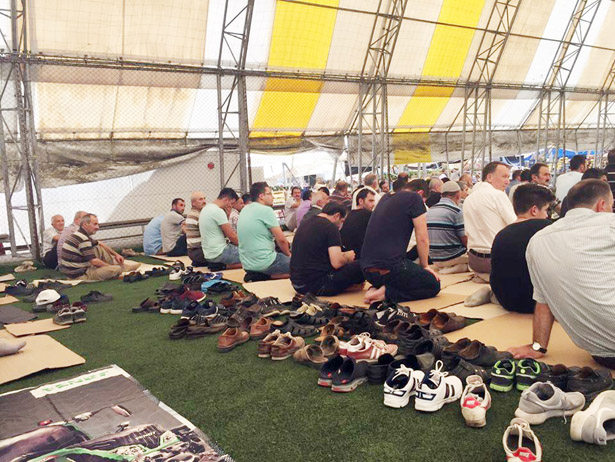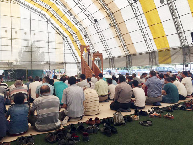 Vatandaşlar ise ezanın okunmasıyla birlikte halı sahanın içinde ibadetlerini serin bir ortamda gerçekleştirdi.