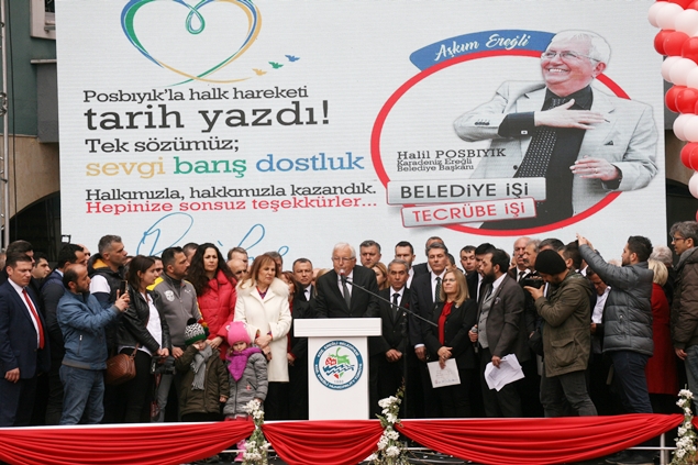 31 Mart Yerel Seçimlerinde Ereğli halkını büyük desteğiyle beş yıl aradan sonra yeniden belediye başkanı seçilen Halil Posbıyık, belediye başkanlığı koltuğuna yeniden oturdu.