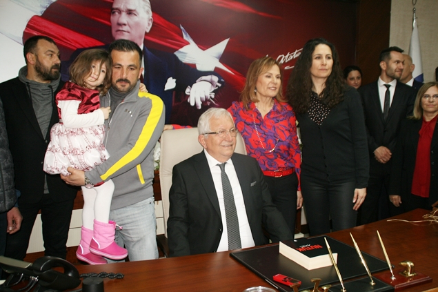 Posbıyık daha sonra belediye başkanlığı koltuğuna oturarak basın mensuplarına poz verdi. Posbıyık'ın makama oturması sırasında ailesi de ona eşlik etti.