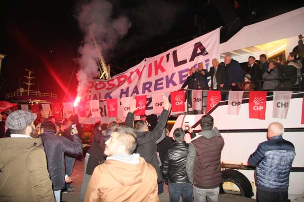 Buradan Bozhane Barınağı'na geçen Posbıyık, bir araya geldiği balıkçılar tarafından coşku ile karşılandı.