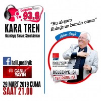 CHP Karadeniz Ereğli Belediye Başkanı Adayı Halil Posbıyık'ın konuk olacağı Kara Tren" programı 29 Mart 2019 Cuma günü saat 21.00-23.00 saatleri arasında 93.9 Değişim Radyo'da yayınlanacak.