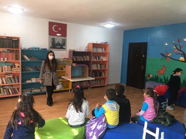 Kütüphane Sorumlusu ve Kütüphaneci Şeyma Özlem Sofu öğrenciler ile oyun oynayarak onlara kitap hediye etti.