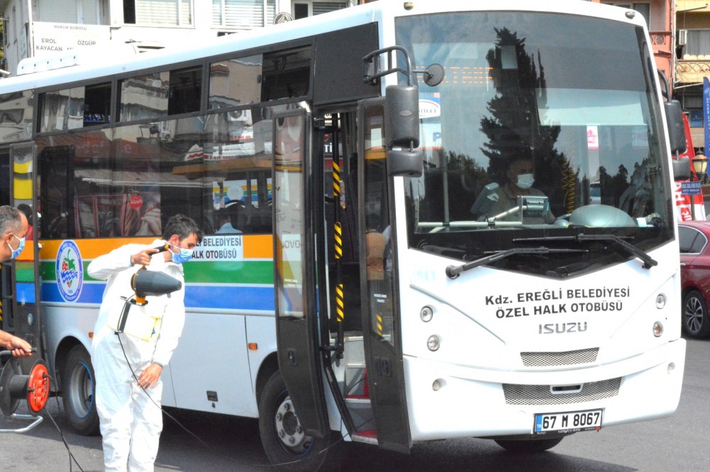 Pandemide rakamların artış göstermesinin ardından Kdz. Ereğli Belediyesi Ulaşım Hizmetleri Müdürlüğü denetiminde Çilek Özel Halk Otobüslerinin tamamı dezenfekte edildi. Çalışmalar belirli aralıklarla devam edecek.”