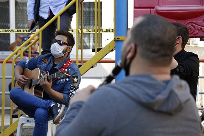 Zonguldak'ta hafta sonu sokağa çıkma kısıtlaması nedeniyle vatandaşlar evlerinden çıkmazken, mahalle mahalle gezen müzisyenler mini konser verdi.