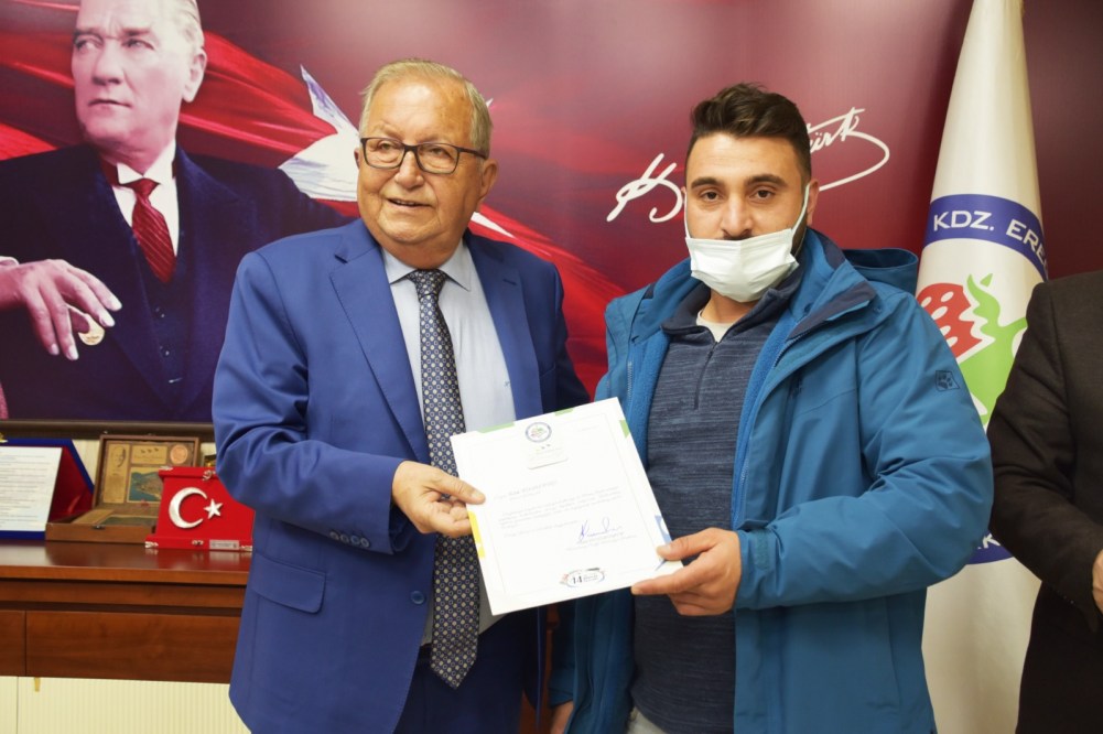 Kdz. Ereğli Belediye Başkanı Halil Posbıyık, 14. Hamsi Festivali’ne katkıda bulunan balıkçı, fırıncı ve pazar esnafı 32 kişiye teşekkür belgesi verdi. ‘Halkımız festivaline sahip çıktı’ diyen Başkan Posbıyık, “Ereğli festivali özlemiş. Bu festival Halil Posbıyık’ın festivali değil, Belediyenin de değil… Bu, halkın festivali, halkımız festivaline sahip çıktı. Destekleriniz için halkım adına sizlere teşekkür ediyorum” dedi. Başkan Posbıyık, havanın güzel geçmesini gündeme getiren esnafa “Efsunlu falan değilim. İyi niyetli bir insan olduğum için Allah yardım ediyor” diye yanıt verdi.