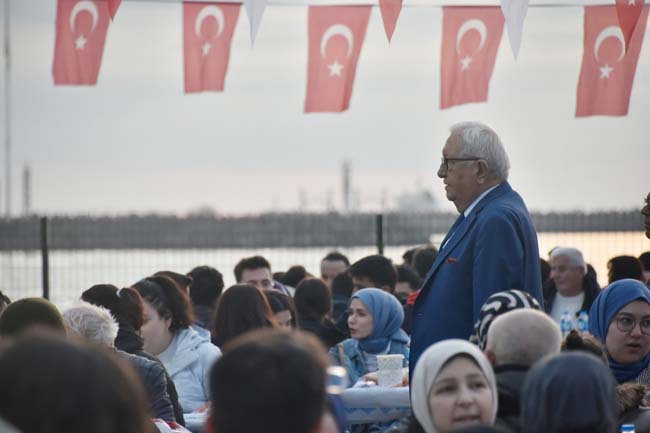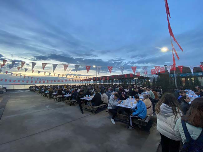 Halkımızla böyle kalabalık bir ortamda iftar yapmak çok güzel. Hepinizin evinde daha güzel yemekler olabilir, olmayabilir ama halkımızla beraber birlikte olmanın mutluluğu ve gururunu yaşıyoruz.” dedi