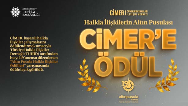 Cumhurbaşkanlığı İletişim Başkanlığı bünyesinde faaliyet gösteren CİMER, başarılı halkla ilişkiler çalışmalarını ödüllendirmek amacıyla TÜHİD tarafından bu yıl 19’uncusu düzenlenen “Altın Pusula Halkla İlişkiler Ödülleri” yarışmasında ödüle layık bulundu.