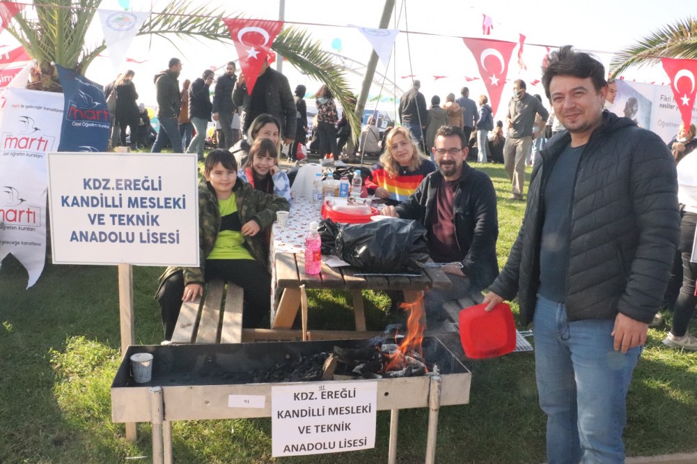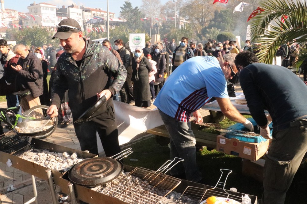 “2002 yılında birsosyal hareket yaratalım diye karar verdik. Peşinden Guiness Rekorlar Kitabı’nı incelemeye başladım. Peru’da 685 metre uzunluğunda şöminede et pişirip dünya rekoru kırmışlar. Biz de neden olmasın, biz de hamsi yaparız, uzun mangal yaparız dedik. O yıl 2 bin 600 metre uzunluğunda mangal yaptık. Erdemir bize bugün de yardım ediyor sağolsun, mangal saclarını verdi, bütün Ereğli’ye dağıttık. Kaportacılar mangal yaptı devamlı. Bir tarafta hamsiler ayıklandı. Dış basının da çok ilgisini çekti.