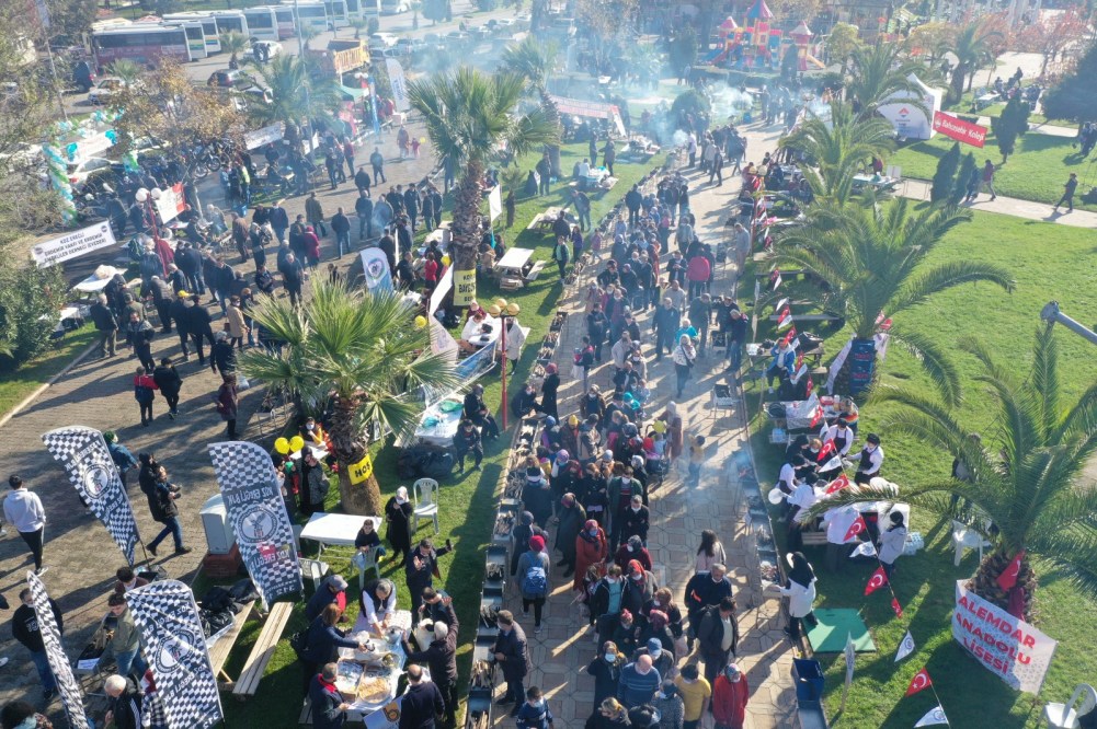 Festivalin başlamasına saatler kala çok sayıda kişi de dağıtılacağı açıklanan 15 ton hamsi, soğan, ekmek, helva ve su alabilmek için günün erken saatlerinde kuyruğa girdi. İlçe ve bölgedeki sivil toplum kuruluşları ve vatandaşların oluşturduğu stantlar, sahil şeridini tamamen kapladı.