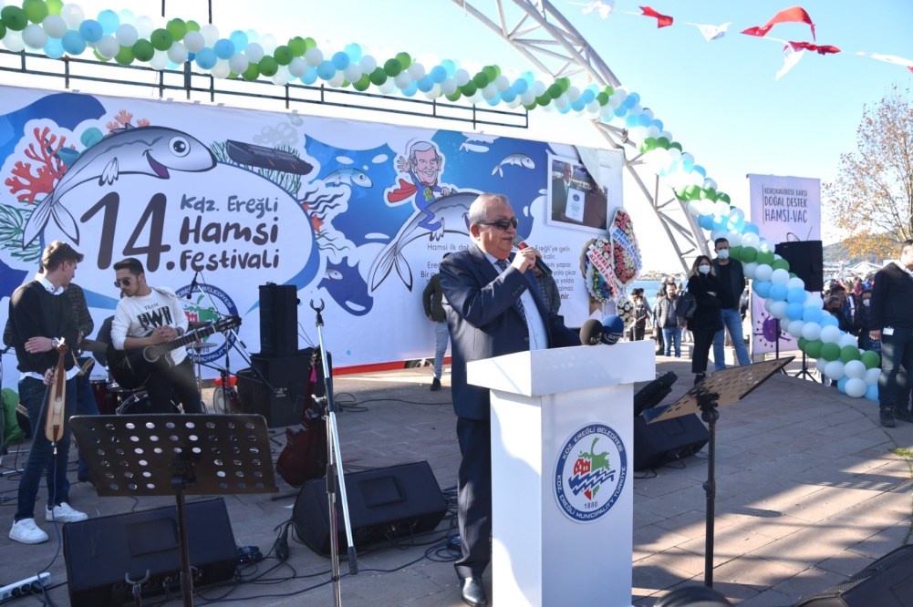 Karadeniz Ereğli 14. Hamsi Festivali, güneşli bir havada, halkın yoğun katılımıyla Ereğli Sahil şeridinde gerçekleştirildi. Karadeniz Ereğli Belediye Başkanı Halil Posbıyık, “Bugün herkesin bütün sıkıntılarını, pandemiyi, problemleri, dertleri unutup, herkesin eğlenmesini, coşkulu olmasını diliyoruz. Hamsi doğal bir pandemi düşmanı. Sinovac var, Turkovac var. Bizde de Hamsivac var. Bu doğal bir tür, hastalıklara karşı iyi geliyor. Onun için bugün bol bol hamsi tüketin” dedi.