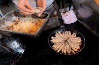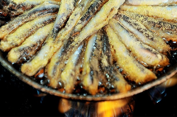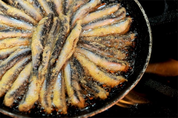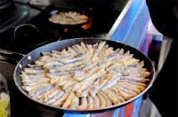 - Hamsiler teker teker mısır ununa bulunuyor. Dilerseniz bu aşamada unun içine baharat yada tuz ilavesi de yapılabiliyor.