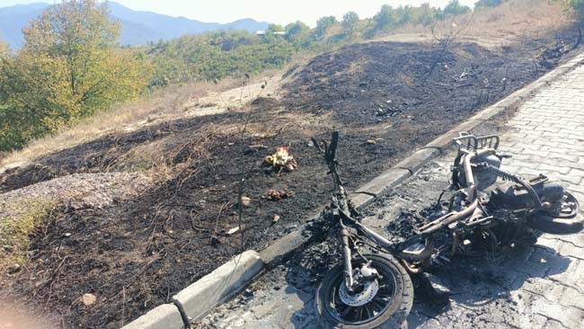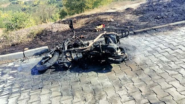 Olay ilçeye bağlı Kaptaş köyünde meydana geldi. İddiaya göre Fatih A. idaresindeki motosiklet aniden alevlere teslim oldu. Motosiklet sürücüsü Fatih A. yangından yara almadan kurtulurken, yangın itfaiye ekiplerine haber verildi. Bu sırada olay yerinden geçen tarım ilaçlama aracı yangına müdahale etti. Yangın ormanlık alana sıçramadan söndürüldü. Yangında motosiklet kullanılamaz hale geldi.