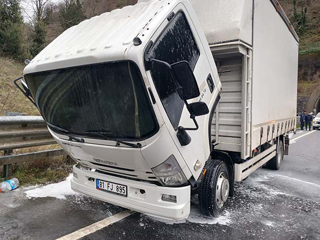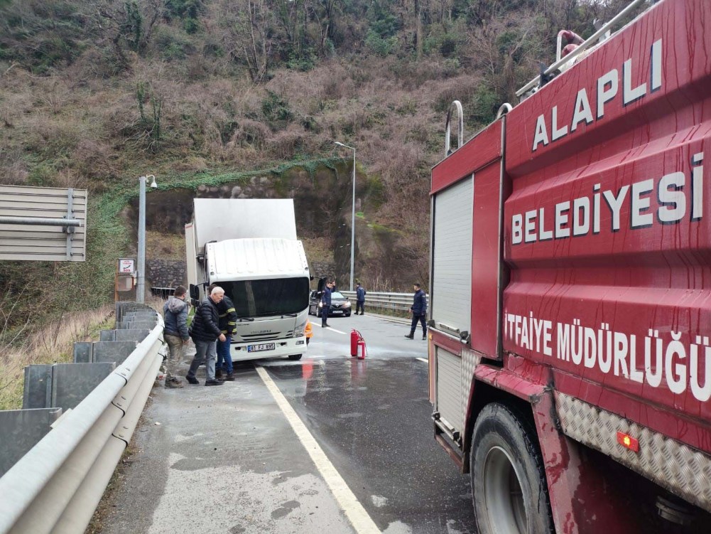 Edinilen bilgilere göre, olay Alaplı Değirmenağzı mevkiinde meydana geldi. Alaplı yönüne gitmekte olan Hüseyin G. idaresindeki 81 FJ 895 plakalı gıda maddesi yüklü kamyonet, haraket halindeyken motor kısmından alev aldı. Motordan duman çıktığını gören sürücü, aracı emniyet şeridinde durdurup, 112 Acil Çağrı Merkezi'nden yardım istedi. İhbar üzerine bölgeye Alaplı itfaiye ekipleri sevk edildi. İttfaiye ekipleri müdahalesi ile kısa yangın büyümeden söndürülürken, kamyonette maddi hasar oluştu.