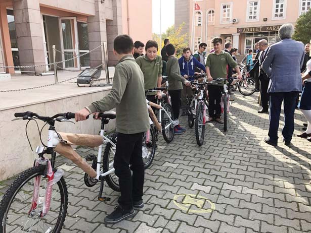 Açıklamaların ardından bisikletler öğrencilere teslim edilerek, hatıra fotoğrafı çektirildi.