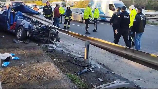 Kocaeli'nin Çayırova ilçesinde otomobil bariyerlere ok gibi saplandı. Feci kazada anne ve oğlu hayatını kaybetti, sürücü ise yaralandı.