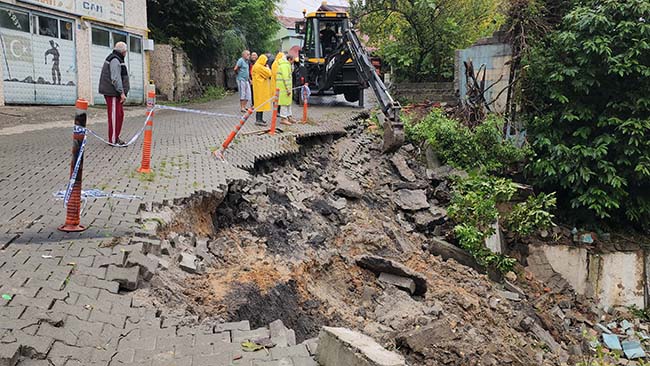Dağyolu Sokak üzerinde yağmur sularının getirdiği toprak yığınları mahalle yolunu kapattı. Ekipler sabah saatlerinden itibaren iş makinelerinin de yardımıyla onarım ve temizlik çalışmalarını sürdürüyor.