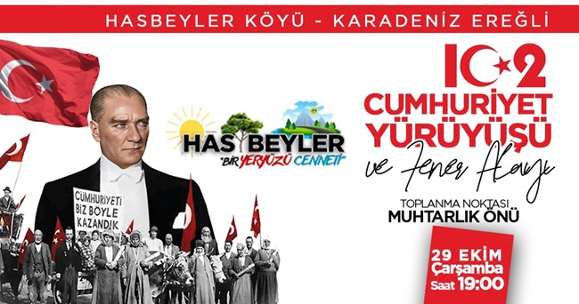 Hasbeyler Köyü Muhtarı Hasan Duman, Cumhuriyetimizin 102. yılı coşkusuna ortak olmak için tüm Ereğli halkını Hasbeyler Köyü’ne davet etti.