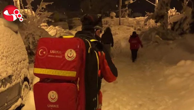 UMKE ve ambulanslı sağlık ekiplerinin il genelindeki zorlu hasta kurtarma mesaisi sürüyor. Bakırlık köyünde yaşayan 57 yaşındaki Altun Demir'in göğüs ağrısı yaşaması üzerine yakınları durumu sağlık ekiplerine haber verdi. Ambulansın giremediği köye UMKE ekipleri güçlükle ulaştı. İlk müdahalesi yapılan hasta, ambulansa kadar iş makinesinde taşındı. Ambulansa alınarak hastaneye kaldırılan Demir'in sağlık durumunun iyi olduğu öğrenildi.