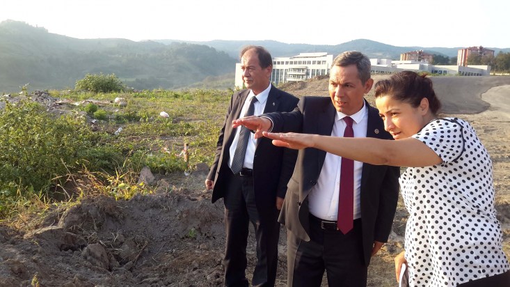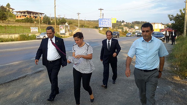 Karadeniz Ereğli Belediyesi Kaynarca Toplu Konutları mevkiinde yapımı tamamlanan yeni hastane binasının yol sorunun çözümü için düğmeye bastı. Karadeniz Ereğli Belediye Başkanı Hüseyin Uysal, Belediye Başkan Yardımcıları İbrahim Cöbek, Esra Alpago ve Fen İşleri Müdürü Oğuz Cömert ile birlikte incelemelerde bulundu.