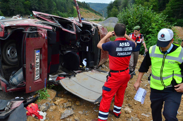 Zonguldak'ta bir otomobilin takla atması sonucu meydana gelen trafik kazasında 1'i ağır 3 kişi yaralandı.