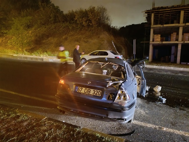 Zonguldak'ın Ereğli ilçesinde sürücüsünün direksiyon hakimiyetini kaybettiği otomobil takla attı.