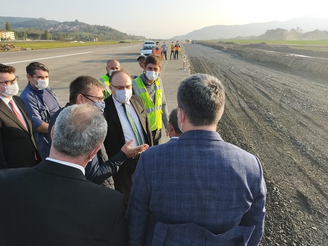 Zonguldak Valisi Mustafa Tutulmaz, Pist Genişletme çalışmaları devam eden Zonguldak Havalimanı’ nda incelemelerde bulundu. Çalışmaları yerinde inceleyen Vali Tutulmaz, yetkililerden bilgi aldı.