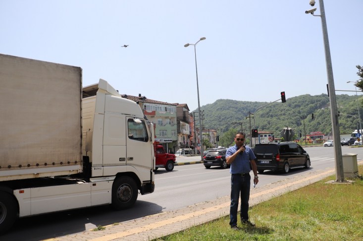 Yapılan uygulama ile ilgili olarak açıklamada bulunan Karakol ve Trafik amiri Recep Öztürk " Uygulamamız Emniyet Genel Müdürlüğü'müzün sürekli olarak yaptığı, trafik güvenliği ve düzenini sağlamak adına çeşitli denetimlerimiz var. Burada özel olarak bu kapsamda sürücülerin yakalanma algısına yönelik olarak havadan DRON ile denetim yapıyoruz. Özellikle ağır vasıtaların uygunsuz şerit kullanımı, hatalı sollama, kamuoyunda özellikle sürekli olarak gündeme gelen makas atma olarak tabir ettiğimiz kontrolsüz şerit değiştirme üzerinde ağırlıklı olarak uygulamamız var. Bu kapsamda bugün ilçemizde bu denetimlerimizi yapıyoruz. Sürücülerimizin daha duyarlı olması için bu denetimlerimizi sürdüreceğiz" dedi.