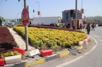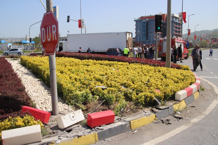 Zonguldak'ın Ereğli ilçesinde sürücüsünün direksiyon hâkimiyeti kaybettiği sürücü refüje çarpıp havalandıktan sonra kavşak içinde kırmızı ışıkta bekleyen kamyonun altına girdi. Kazada 3 kişi yaralandı. Yaralılar Echomar Hastanesinde tedavi altına alındı. O anlar kameralara yansıdı.