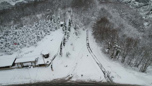 Zonguldak'ta etkili olan kar yağışının ardından Zonguldak-Ereğli kara yolunda ulaşım normale dönerken, ortaya çıkan manzaralar havadan görüntülendi. Temizlenen asfaltın siyah rengiyle ormanların beyaz örtüsü kartpostallık görüntüler oluşturdu.