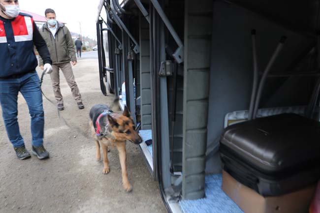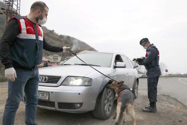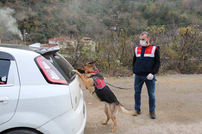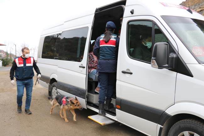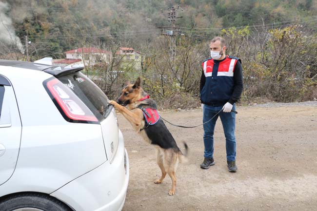 Zonguldak'ta korona virüs salgını nedeniyle denetimler sıklaştı. Jandarma ekipleri drone ile havadan eş zamanlı yaptıkları denetimde “Vera” isimli narkotik köpeği de durdurulan araçları aradı.