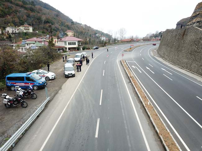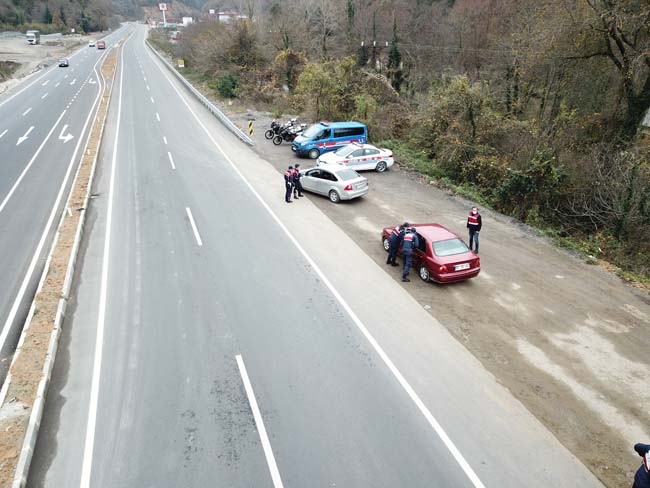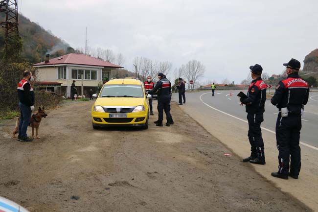 Yeni tip korona virüs salgını dolayısıyla Zonguldak'ta tedbirler kapsamında denetimler sıklıkla sürüyor. İl Jandarma Komutanlığı'na bağlı ekipler havadan ve karadan eş zamanlı trafik denetimi düzenlendi. Denetimde Hayat Eve Sığar (HES) uygulaması, maske denetimi, asayiş ve araç muayene gibi trafik kontrolü de gerçekleştirildi. Havadan drone ile kural ihlali yaptığı tespit edilen araçlar ekiplere bildirilirken Narkotik köpeği “Vera” araçları didik aradı. KOM ekipleri de uygulamada yer aldı.