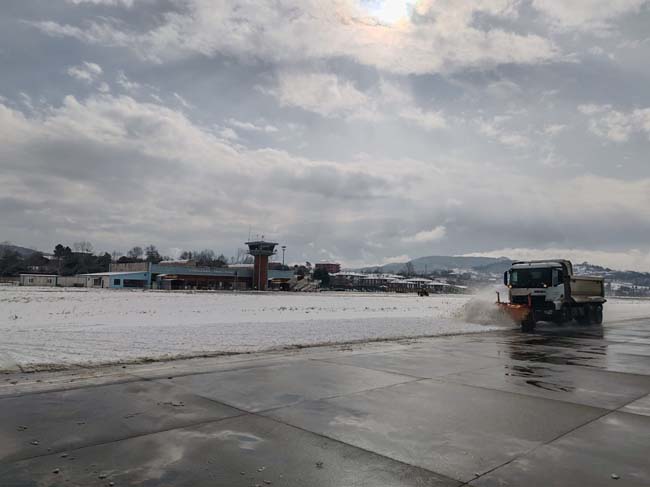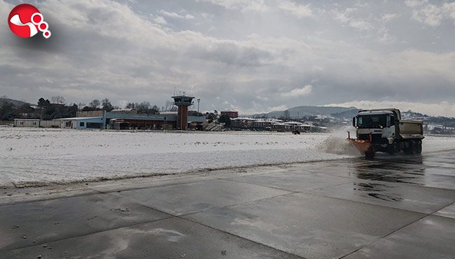 Meteoroloji Genel Müdürlüğü tarafından yapılan uyarılar kapsamında Batı Karadeniz Bölgesi'nde etkisini arttıran yoğun kar yağışı nedeniyle Zonguldak Havalimanı'nda uçuşların iptal olmaması amacıyla pistte karla mücadele çalışması başlatıldı.