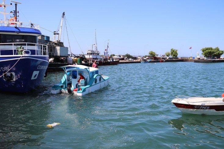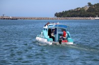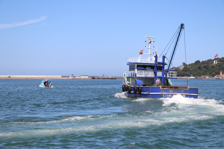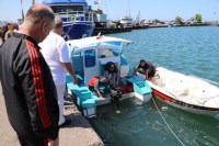 Teknenin dümenine geçen Ereğli Kaymakamı İsmail Çorumluoğlu tekneye tam not