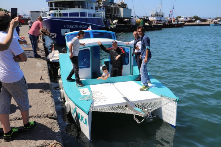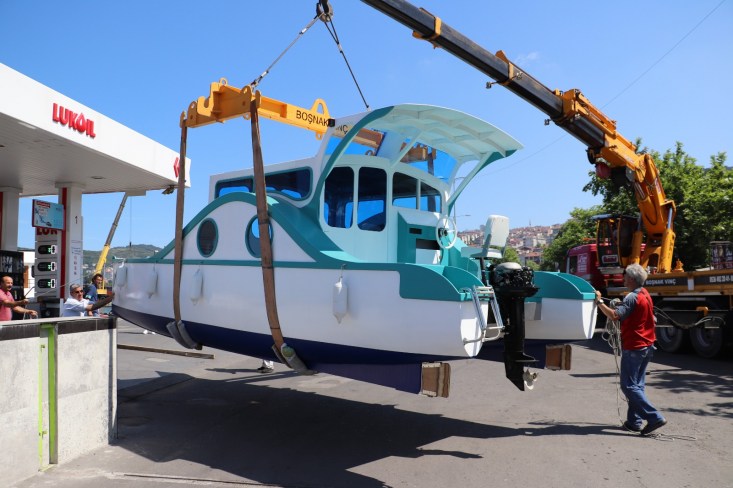 8 aylık emeği olan teknesini denize indiren Murat Demir,