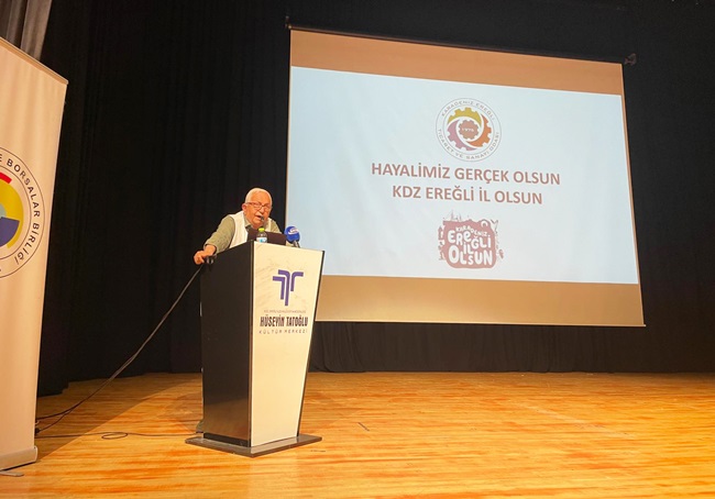 “Hayalimiz Gerçek Olsun Kdz. Ereğli İl Olsun” mottosuyla Karadeniz Ereğli Ticaret ve Sanayi Odası önderliğinde Tatoğlu Kültür Merkezinde bir toplantı gerçekleştirildi.