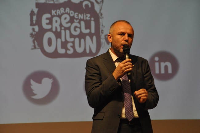 Toplantı Karadeniz Ereğli Ticaret Odası Başkanı Arslan Keleş, Ankara ve İstanbul’a yakınlığı yanı sıra ulaşım ve liman altyapısı, demir-çelik, madencilik, tersanecilik alanındaki gelişmişliği ile Karadeniz Ereğli’nin büyük bir ekonomiye sahip olduğunu belirtti. Yüksek eğitim seviyesi, yetişmiş iş gücü ile Karadeniz Ereğli’nin önemli bir güce sahip olduğunu; tarihi yapıları ve doğal güzellikleri ile cazibe merkezi olduğunu ve büyümeye de elverişli bir ilçe olduğunu vurguladı.